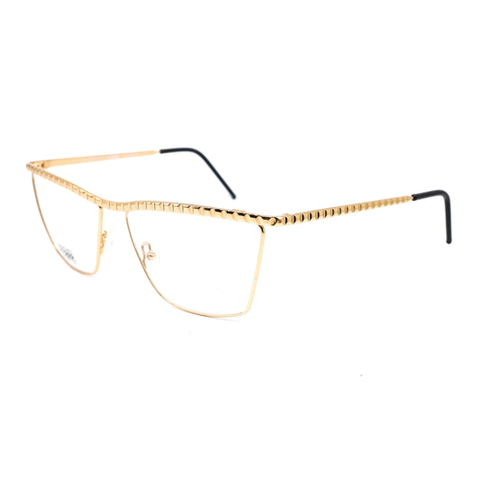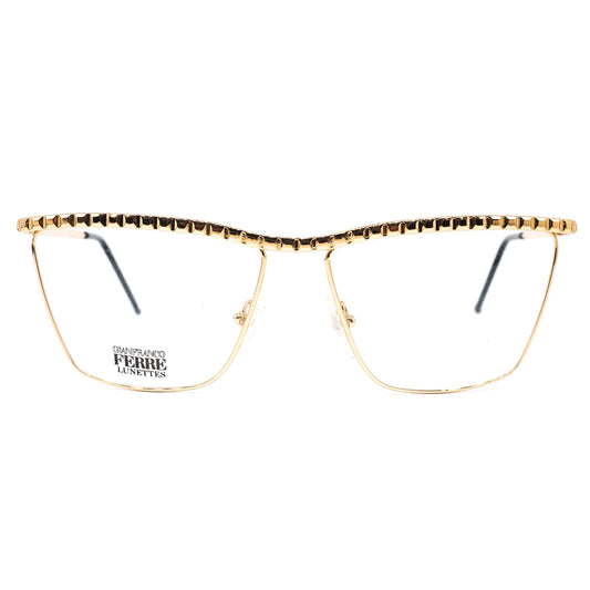 Gianfranco Ferré GFF134 modernist slim golden metal square cateye eyeglasses frames with specially carved browline/temples, 1990s NOS Italy