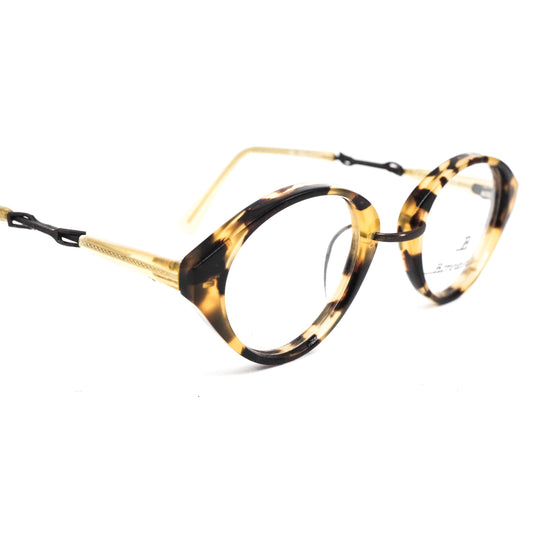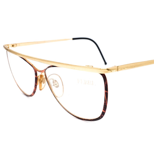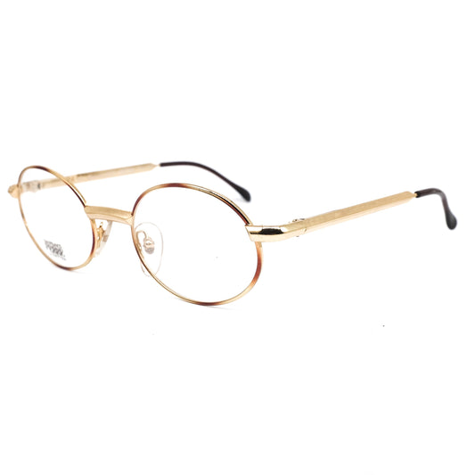 Gianfranco Ferre GFF 122 classic oval cello eyeglasses with golden rim and brown tortoise body, 1980s NOS Italy