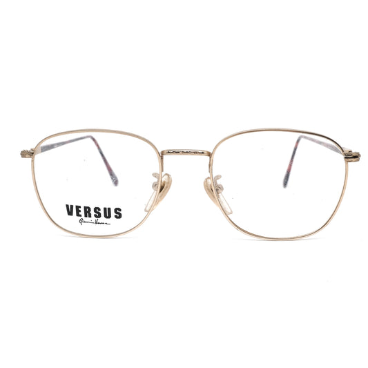 Versus Versace EF3 classic minimalistic satin gold metallic square eyeglasses frames, 90s NOS
