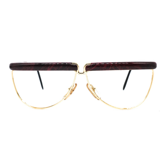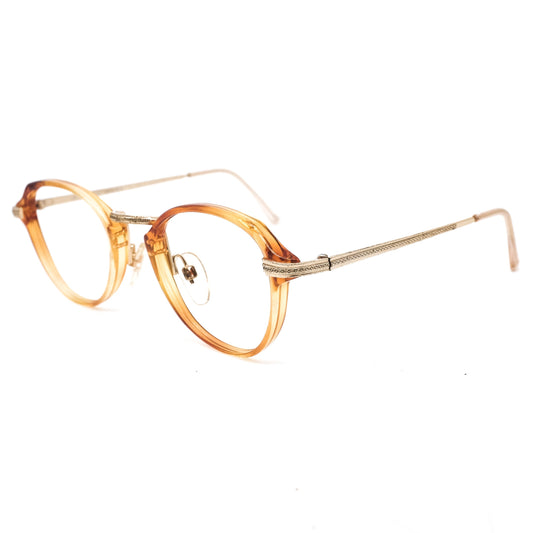 Safilo 1950s oval round cello semi amber eyeglasses frames with carved golden temples and nose bridge. Mint condition Made in Italy