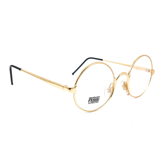 Gianfranco Ferre GFF 23 classic round golden metallic eyeglasses, 1980s NOS Italy
