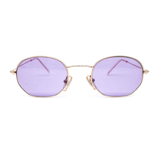 Planet 2000 mod 21003 oval purple lenses sunglasses, thin satin gold frames, NOS 90s Italy