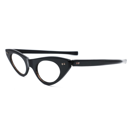 Auth. 1950s artisanal black cateye eyeglasses frames in slim design featuring thick rim, 1950s NoS