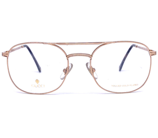 Gucci 1272 Real gold metal aviator eyeglasses frames made in Italy, 1980s NOS