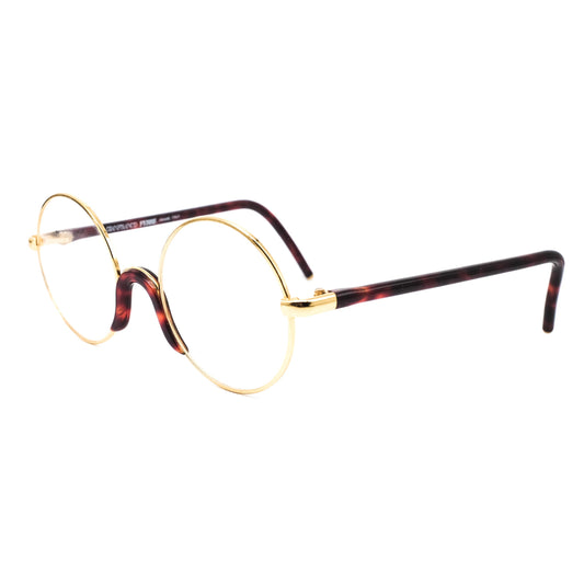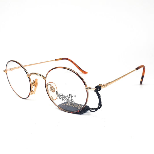 Look round gold metallic eyeglasses frames made in italy with tortoise cable rim, 1980s nos