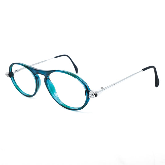 Silhouette M2733 vintage blue acetate oval eyeglasses frames with silver metal temples 1990s NOS Austria