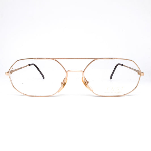 Taxi hexagonal gold metallic eyeglasses frames with double nose bridges made in italy, 1980s nos