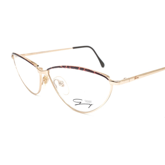 Occhiali da vista Genny 534 cat eye con montatura in metallo dorato, linea frontale rivestita in tartaruga, Italia anni '70 NOS