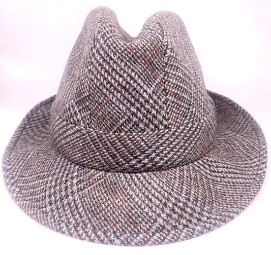 Classy grey tartan trilby hat hand made in Italy in the 80s, Pedrotti hats maker NoS
