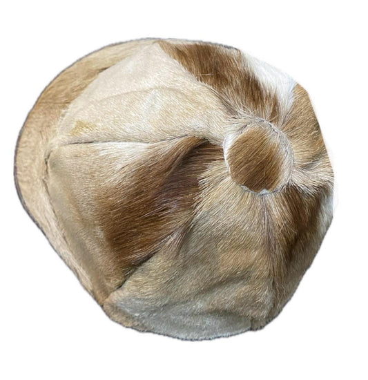 Beige fur & leather artisanal cap in a cute baseball - biker style, sz L- 58 cm never worn