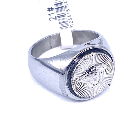 Versace medusa button ring with stainless steel base sz 21 unique piece