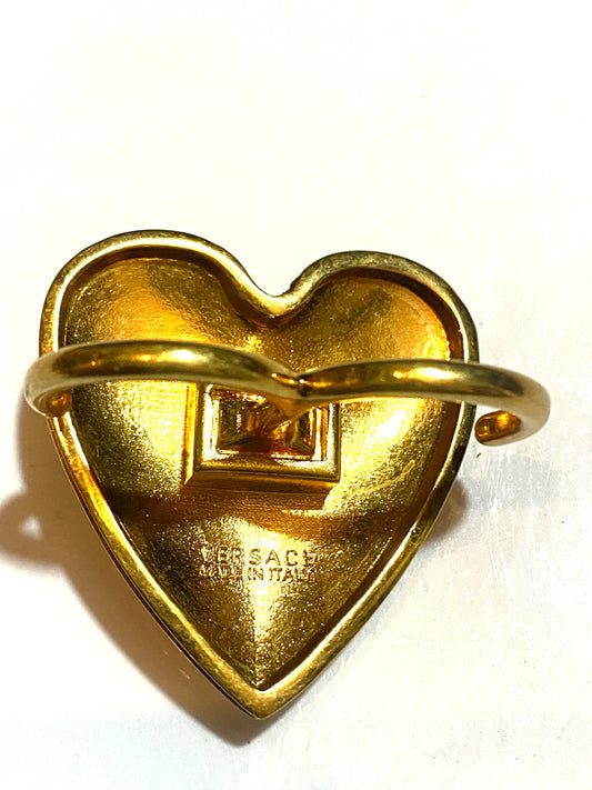 Versace Tribute big Hearth medusa gold plated double finger ring, new