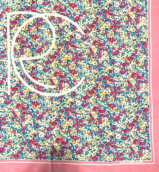 Roberto Capucci pink framed floral boho silk scarf made in Italy, 90s mint condition