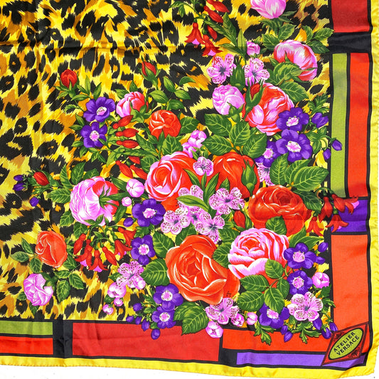 Atelier Versace vintage 90s baroque floral/cheetah pure silk scarf, as new.