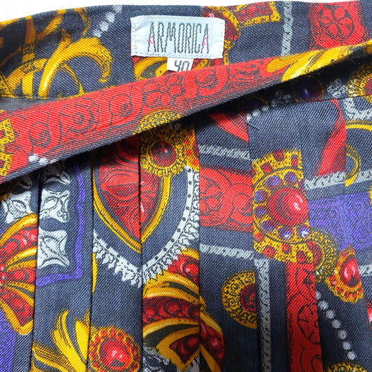 Armorica baroque pleated skirt made in 100% natural viscose fibre, Italy 90s sz 40