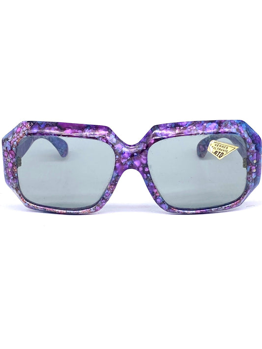 Psychedelic 1960s squared oversized sunglasses handmade in France, NOS