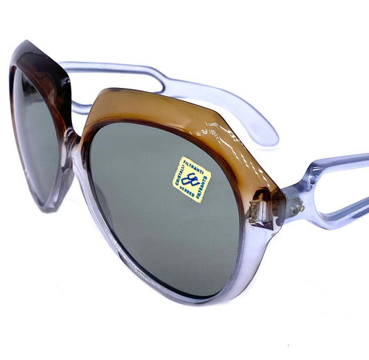 Friulana round oversized brown to sky blue fade sunglasses, NOs 60s Italy