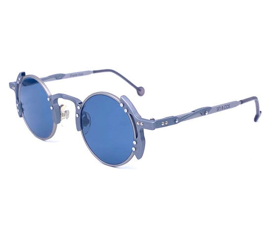 Sin&Cos round steampunk sunglasses in satin silver metal, 90S NOS