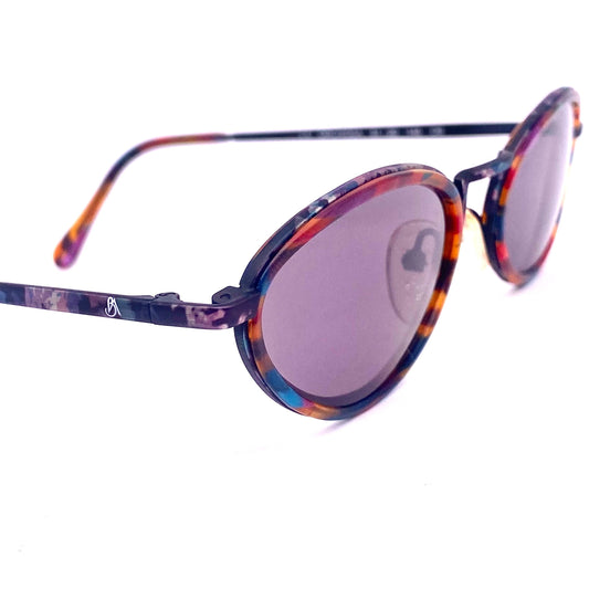 Barbara Allen oval dbl rim minimalist sunglasses w retro Styled bridge, coming in tortoise or multicolor acetate, NOs 80s
