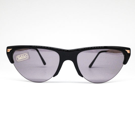 Safilo 1950s style black cateye sunglasses with golden carved temples, NOS 70s Made in Italy