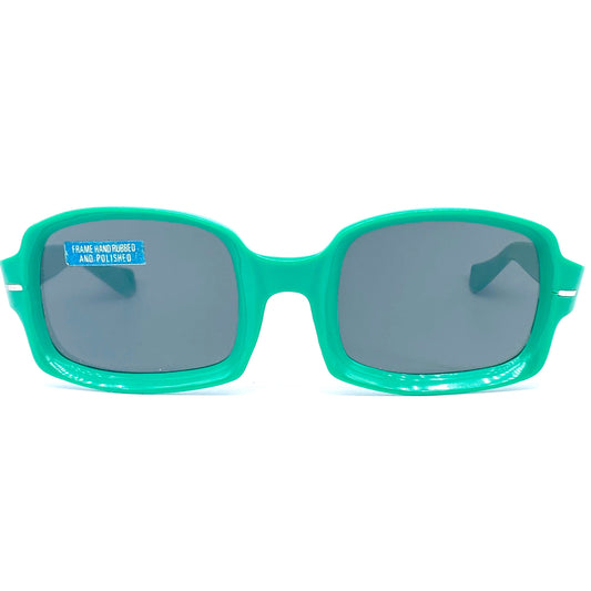 Samco green square sunglasses with grey crystal lenses, 1960s Italy, minty