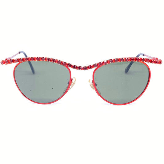 Moschino Persol MM843 red sunglasses with Swarovski browline, rarity, NOS 80s