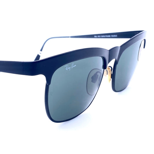 RayBan B&L W0757 square matte black metal sunglasses with thick browline, 1980s NOS