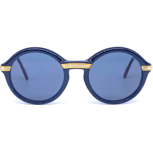 Cartier Cabriolet 49 black round cello sunglasses with trinity gold details, 90s France