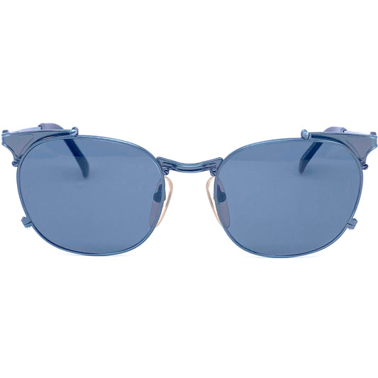 Jean Paul Gaultier 56 2175 square metallized blue steampunk sunglasses made in Japan, 1990s NOS