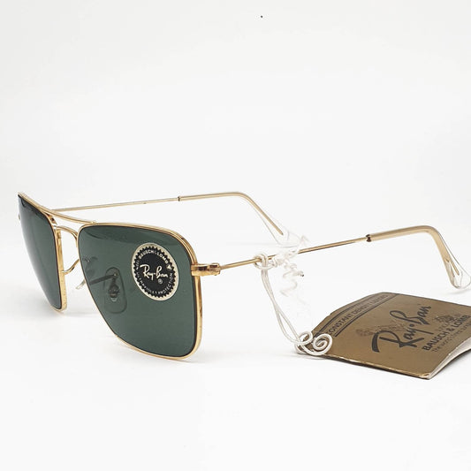 RayBan B&L caravan square metal sunglasses made in USA, black or gold available, 1980s NOSß