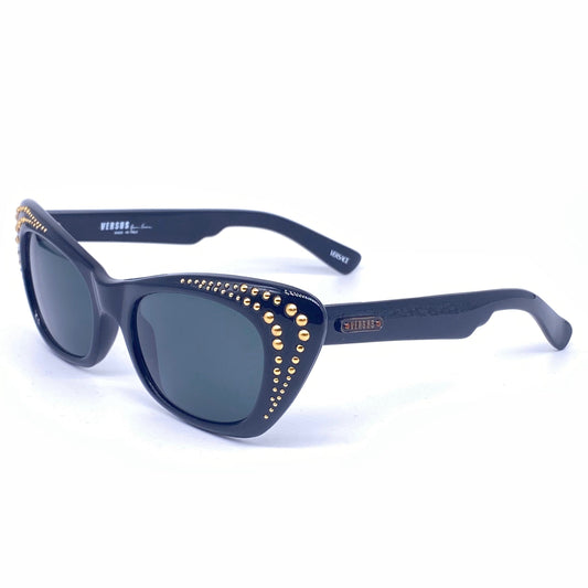 Gianni Versace E-14 black cateye sunglasses with golden studs, NOS 90s Italy