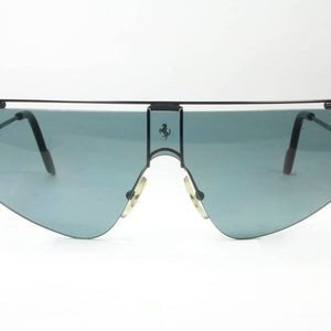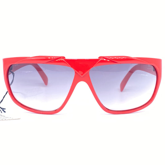 Ferrari F15 shield sunglasses, modernist wrap red enameled shades made in Italy, 1980s NOS