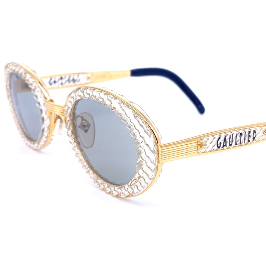 Jean Paul Gaultier 56 5201 oval gold plated titanium sunglasses with crystal effect cello rims NOS 1980s