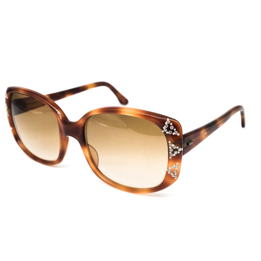 Square oversized tortoise sunglasses adorned with rhinestones, handmade France NOS 70s