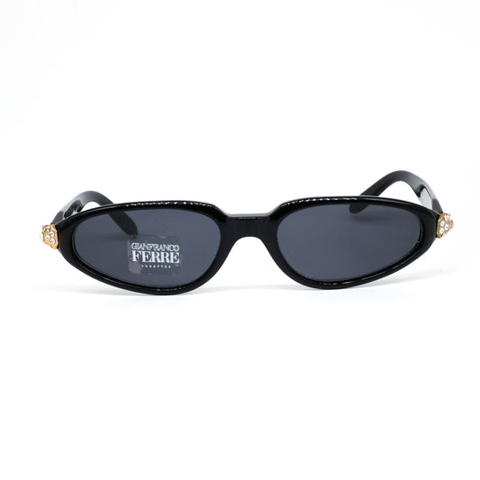 Gianfranco Ferrè GFF 344 black acetate narrow sunglasses with golden metallic details enriched with rhinestones NOS 1990s Italy.