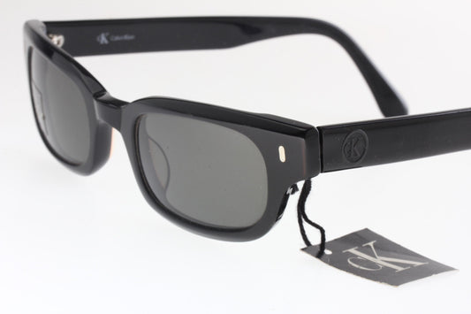 Calvin Klein 4009 square black retro styled sunglasses with crystal lenses, NOS 90s mint