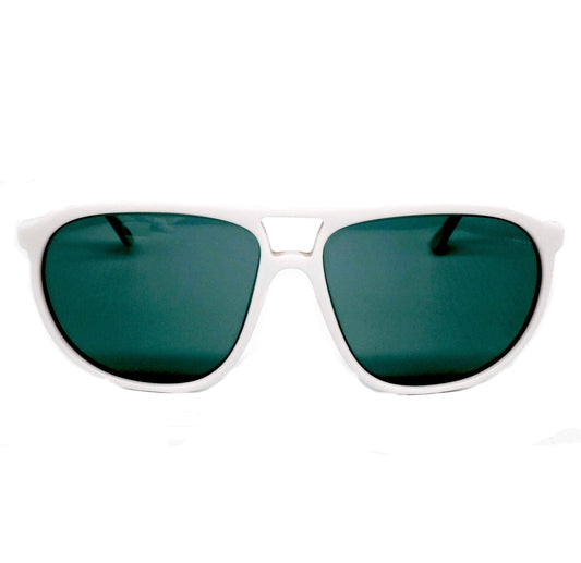 Lozza Zilo Sport white cello aviator sunglasses w crystal lenses, 1970's NOS Italy