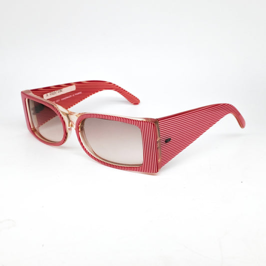 IDC french riviera square rim sunglasses in red/clear pinstripe made in France in the 80s