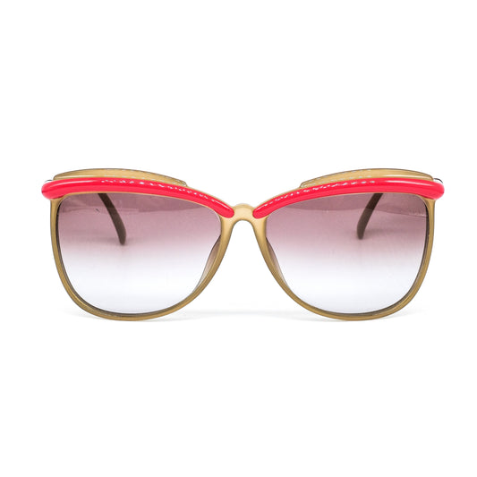 Casanova C05 gold plated cateye sunglasses with special browline in red-ish coating Made in Italy 1980s NOS