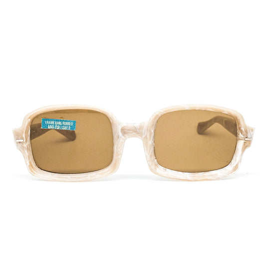 Vintage square sunglasses with dark brown lenses in white-ish resin body. 70s NOS Italy