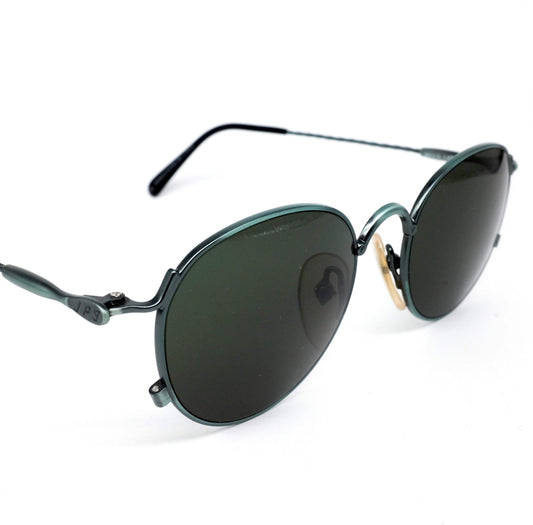 Jean Paul Gaultier 55-2172 round steampunk sunglasses with green metallic rim and temples, new old stock 90s mint made in Japan