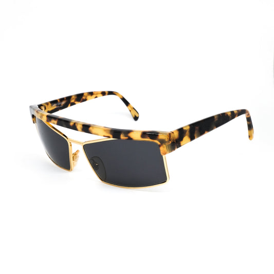 Lozza moon black metallic cateye sunglasses with golden rim in clip on style, made in Italy 1990s NOS