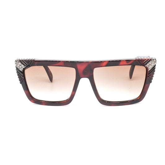 Gianni Versace 812 dark brown tortoise acetate square sunglasses with carved rim enriched with rhinestones NOS 90s