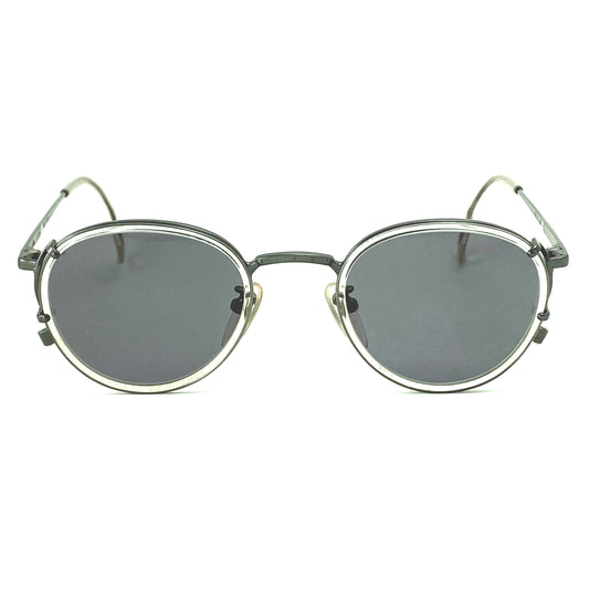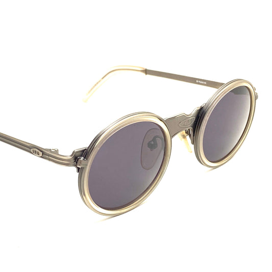 Jean Paul Gaultier 56-3272 vintage round steampunk sunglasses, gunmetal with clear rims, new old stock 90s mint