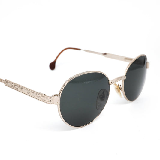 Gian Marco Venturi V932 classic oval minimal silver metallic sunglasses w/ black lenses in finely carved body 80s NOS Italy