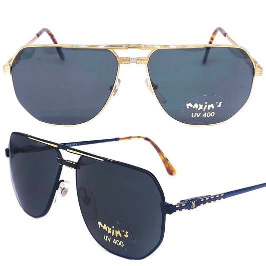 Maxim’s de Paris luxury dbl bridge gold plated metal aviator sunglasses, 1990s NOS Italy