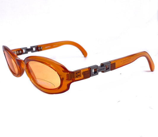 Karl Lagerfeld oval orange sunglasses with cuban chain temples detail, NOS 90s France