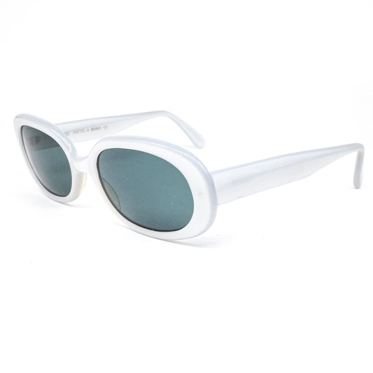 Vintage MIBA oval sunglasses in pearl white w/ black lenses. NOS 80s Handmade in Italy