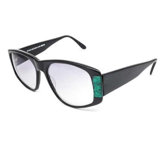 Vintage Ottica cecchini square sunglasses in black acetate with green resin details. 80s Italy NOS