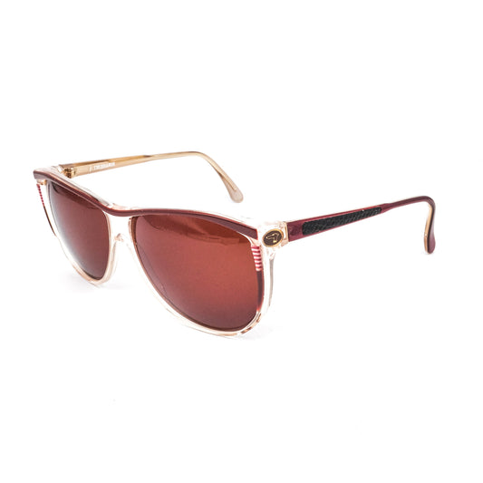 Trussardi oversized cateye sunglasses in clear/burgundy with leather inserts, NOS 80s